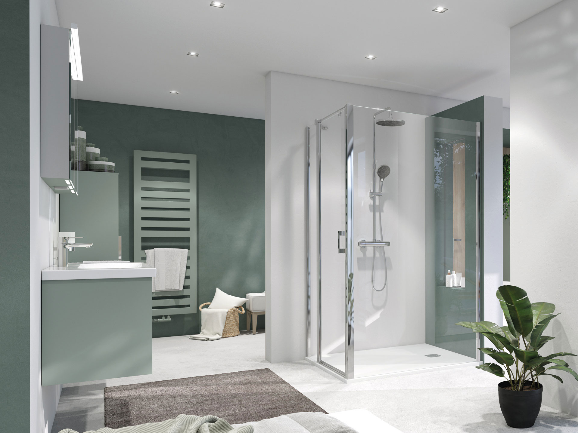 • Gezielte Lichtquellen an Spiegel, Dusche und Waschplatz