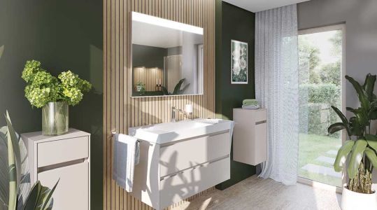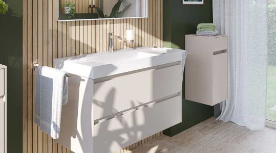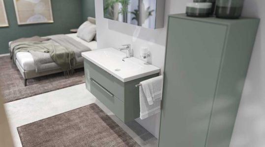 Beide Linien bieten perfekt abgestimmte Keramikprogramme, ein Badmöbel-System und eigene Armaturenserien in Chrom oder Schwarz matt.